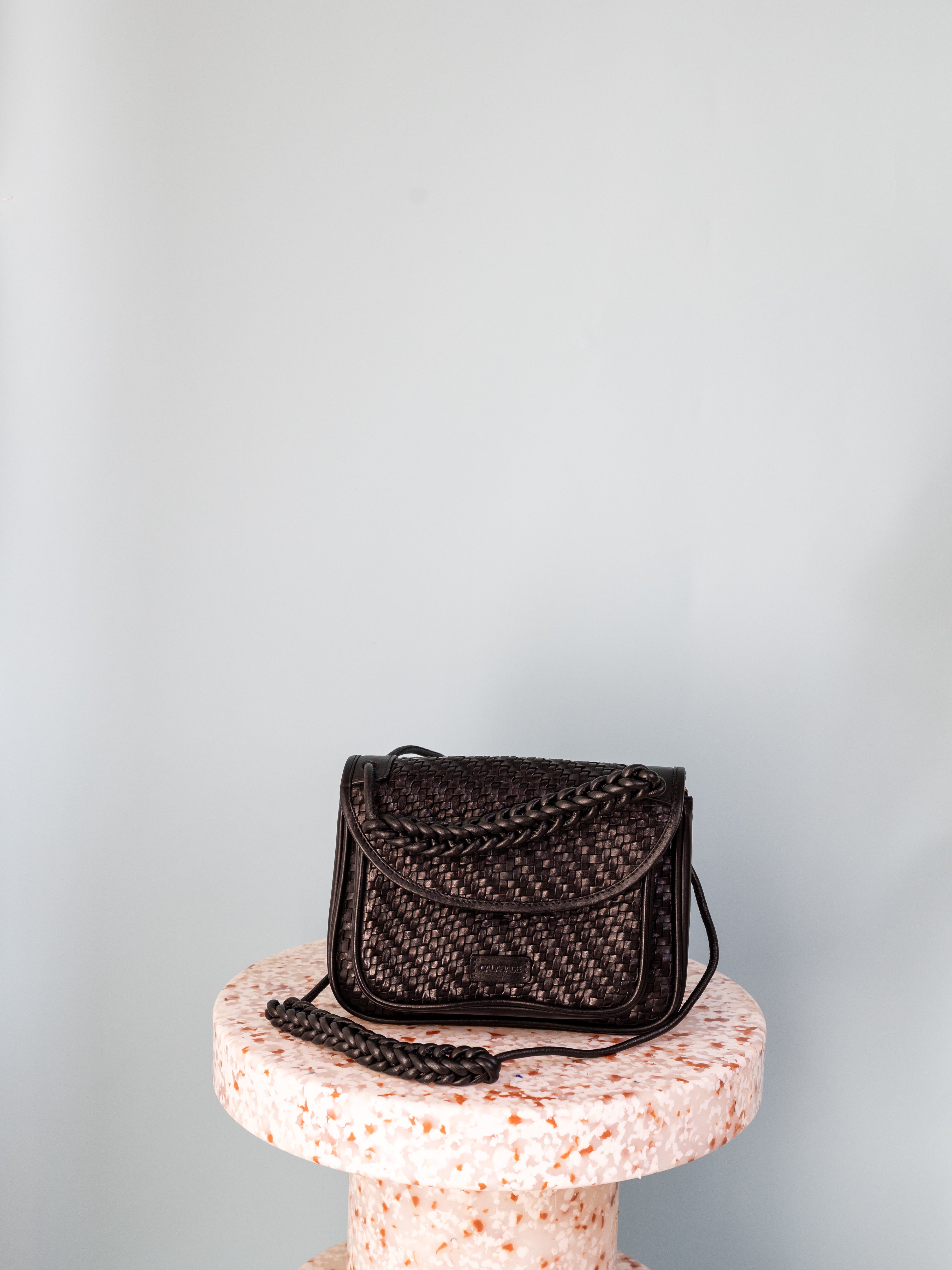 Niko - A versatile bag in a classic Cala Jade leather weave. It features an adjustable shoulder strap so it can be worn both cross-body and over the shoulder. Niko is sized to fit the essentials and is particularly versatile between day and evening as well as different looks.