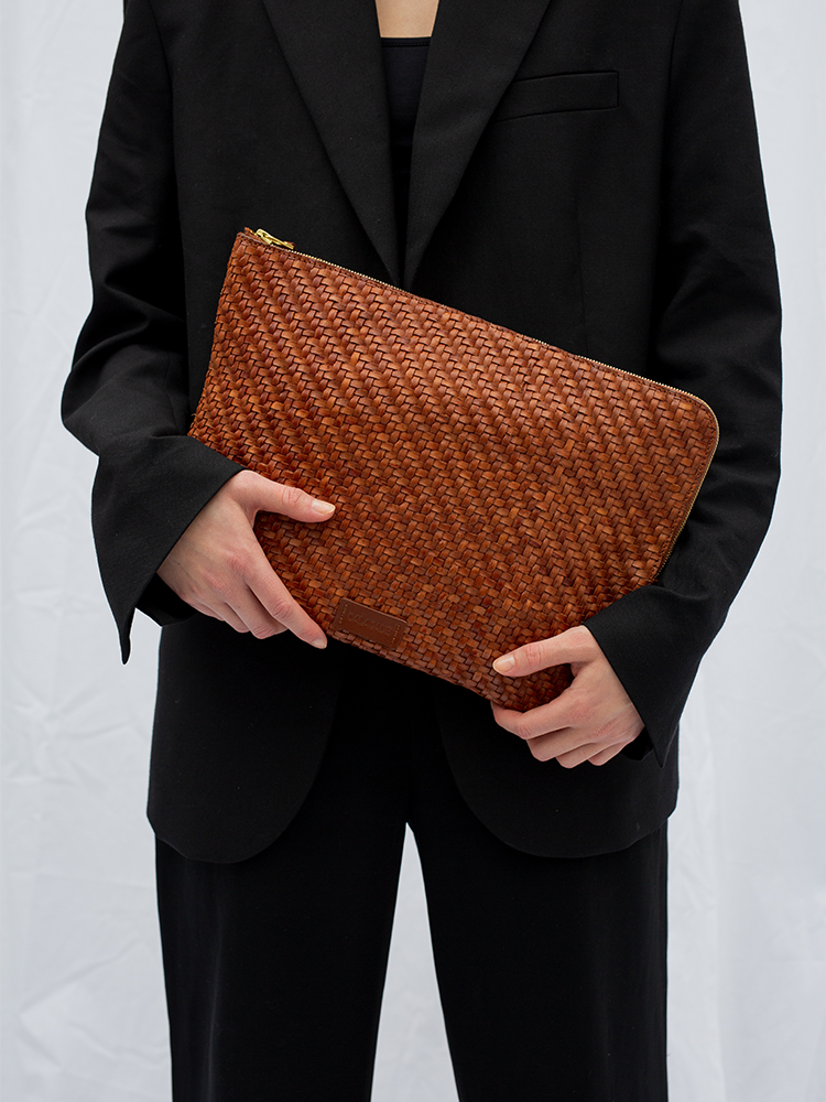 This handy leather sleeve will fit your laptop or other essential items needed for everyday use. In addition to being a great sleeve for your laptop, the BATU L pouch is also perfect as a clutch, make-up bag and organizer. The pouch comes with a handy wristlet so you mix up how you hold it.