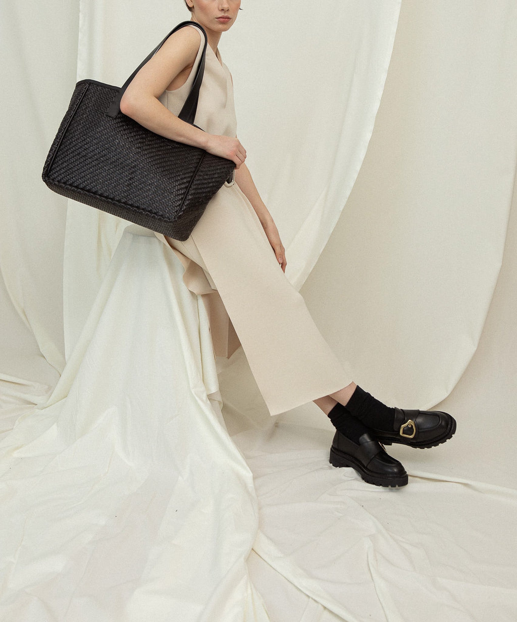 Made in woven sheep leather and will have room for all your essentials and then some.
