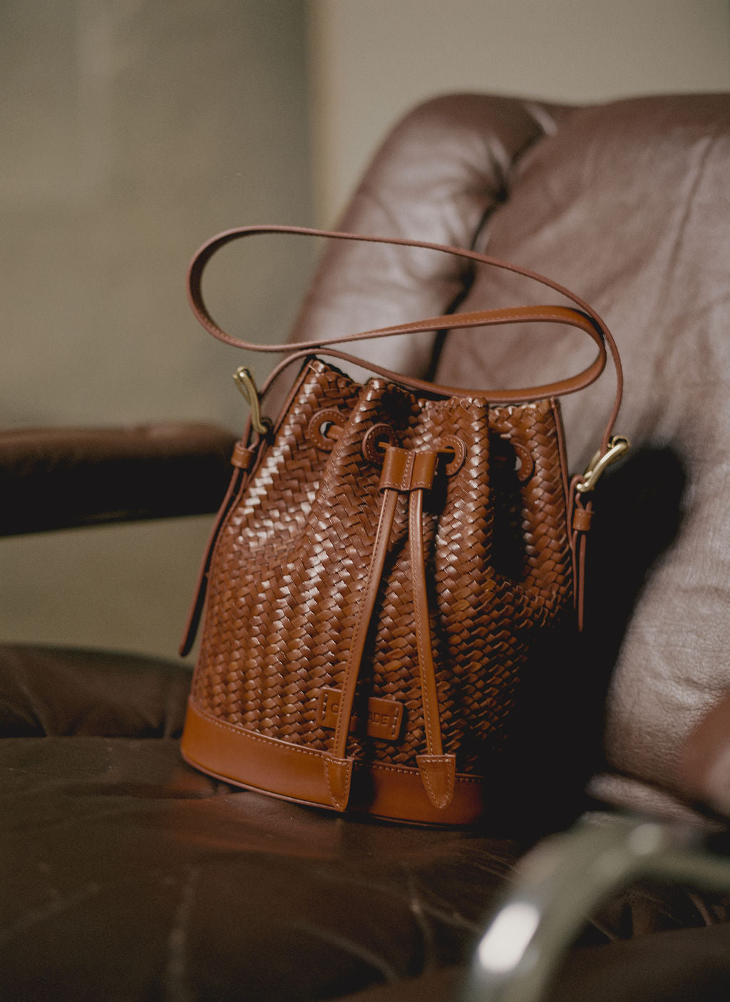 Gaya Mini is the little sister of Gaya, a timeless bucket bag with a retro flair and dressed in woven buffalo leather.
