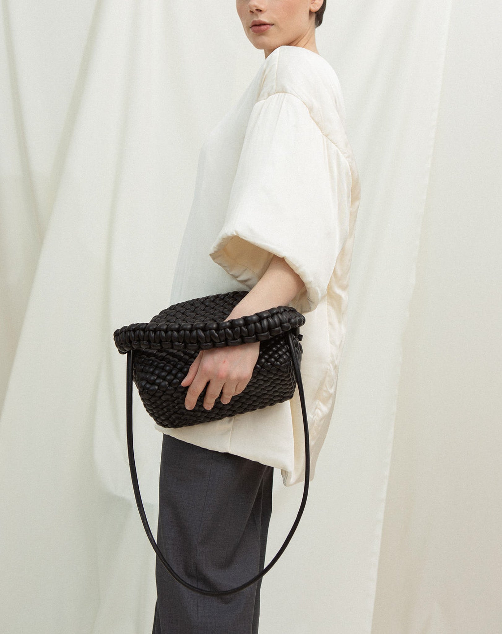 Our Hana clutch is a true favourite, a soft braided sculptural clutch. Handcrafted with a supple baby calf leather and lined with cotton canvas. It is elegantly curved frame with a magnetic closer. Dress the clutch up or down depending on the occasion.