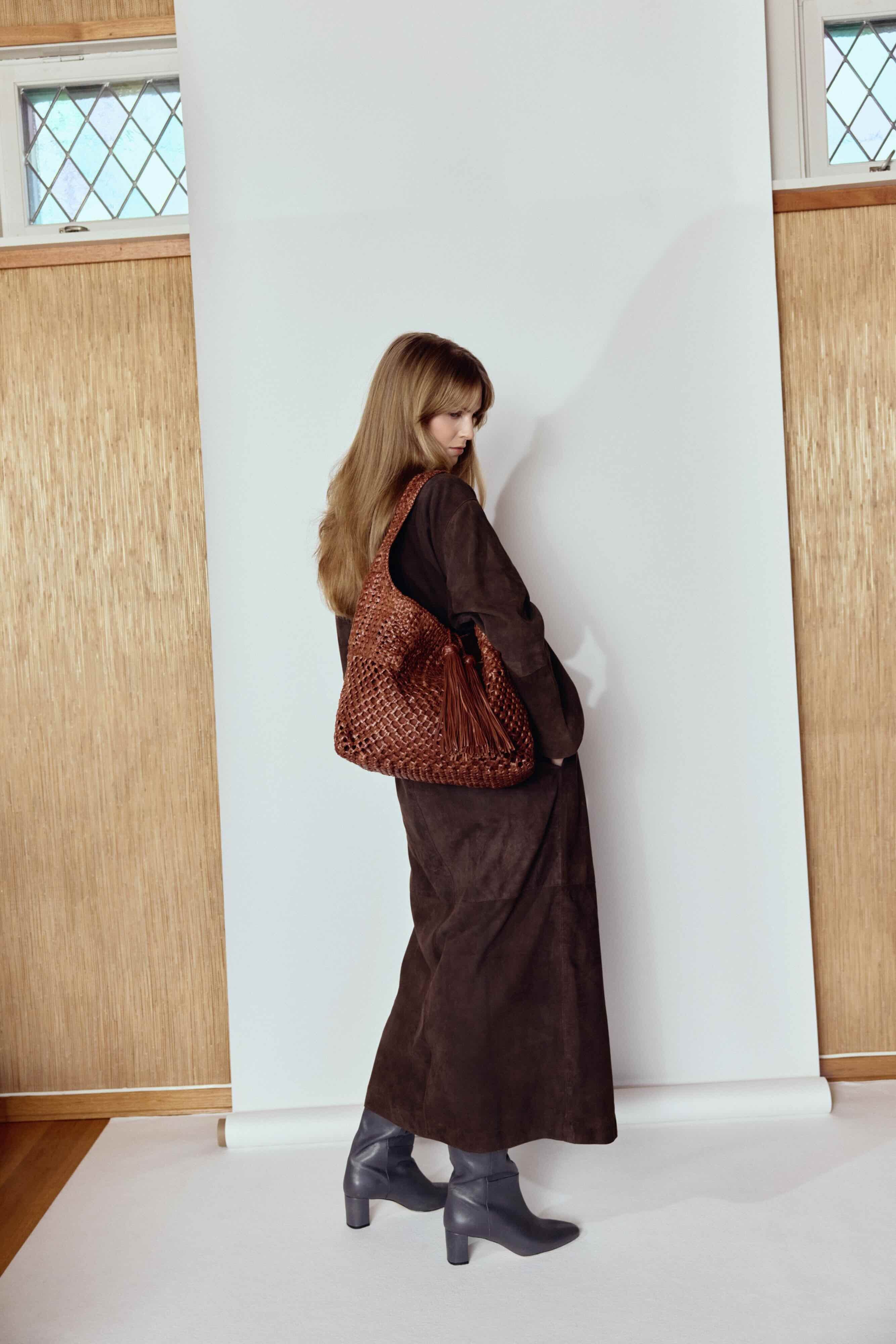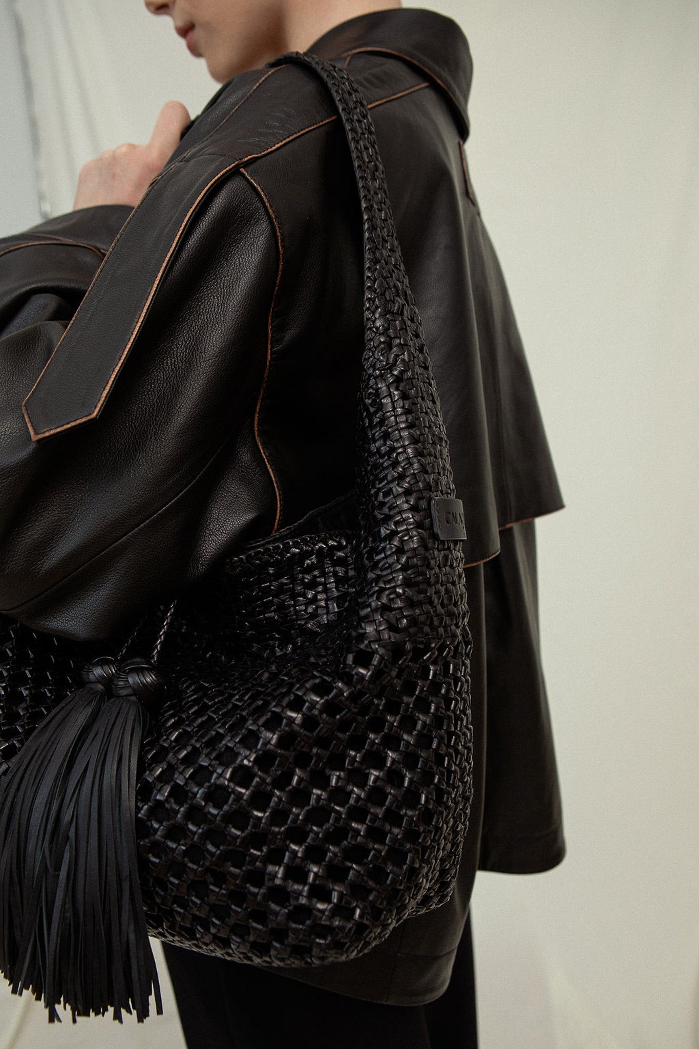 IAK Hobo Bag – hand-braided in a captivating flower weave and topped with long, playful tassels. From everyday errands to the 9-to-5 hustle, this handcrafted beauty effortlessly transitions from day to night. Roomy, practical and slouchy, it's the perfect carry-all hobo bag. Spacious enough for your essentials, laptop and then some. An everyday favorite.
