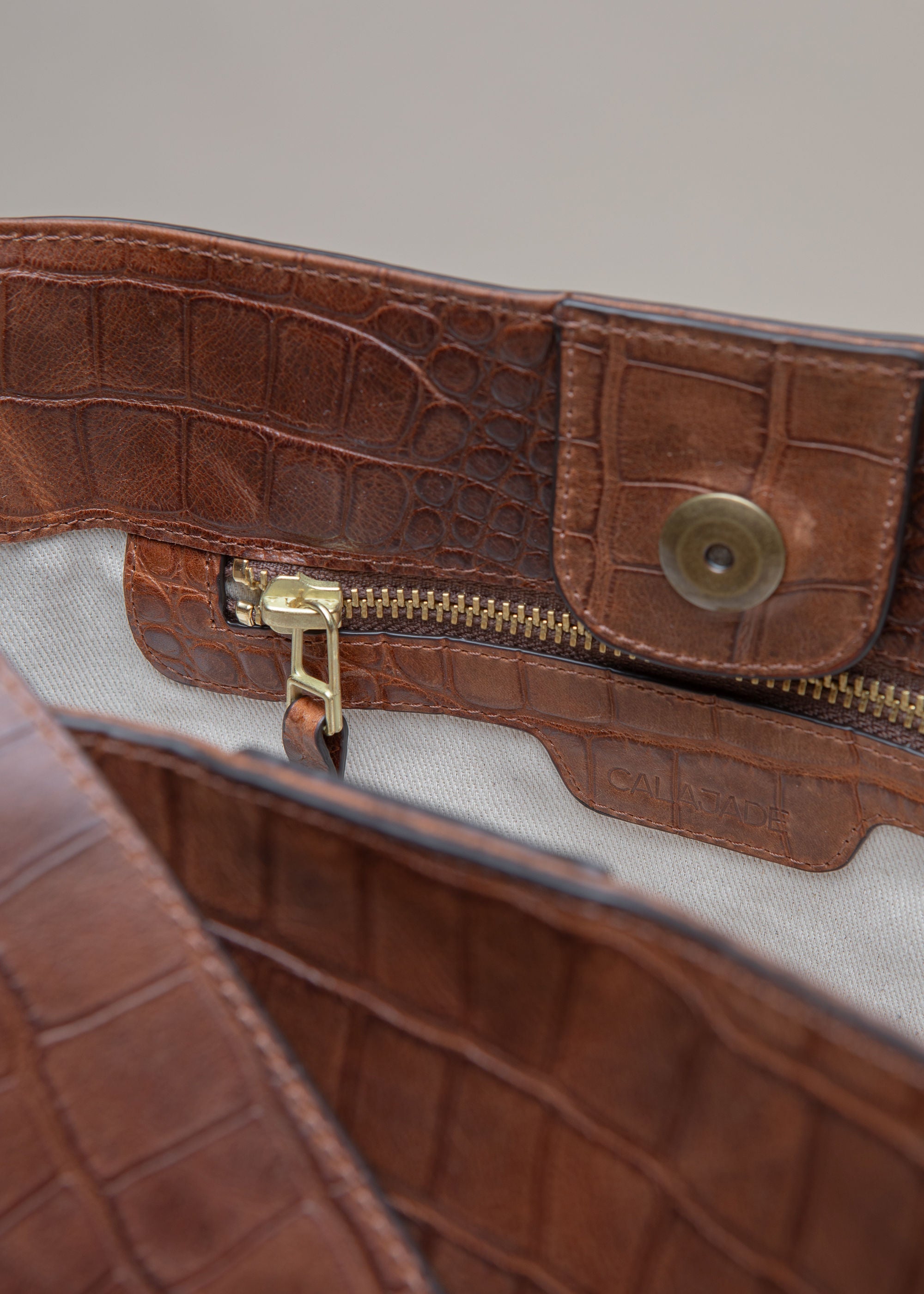 Masago is our leather shopper and tote bag made to assist you in everyday life. We call it simple, yet edgy and timeless. This bag is roomy, will fit your computer, and has a zip pocket inside. The custom-made buckle is inspired by oysters and turns Masago into something special.