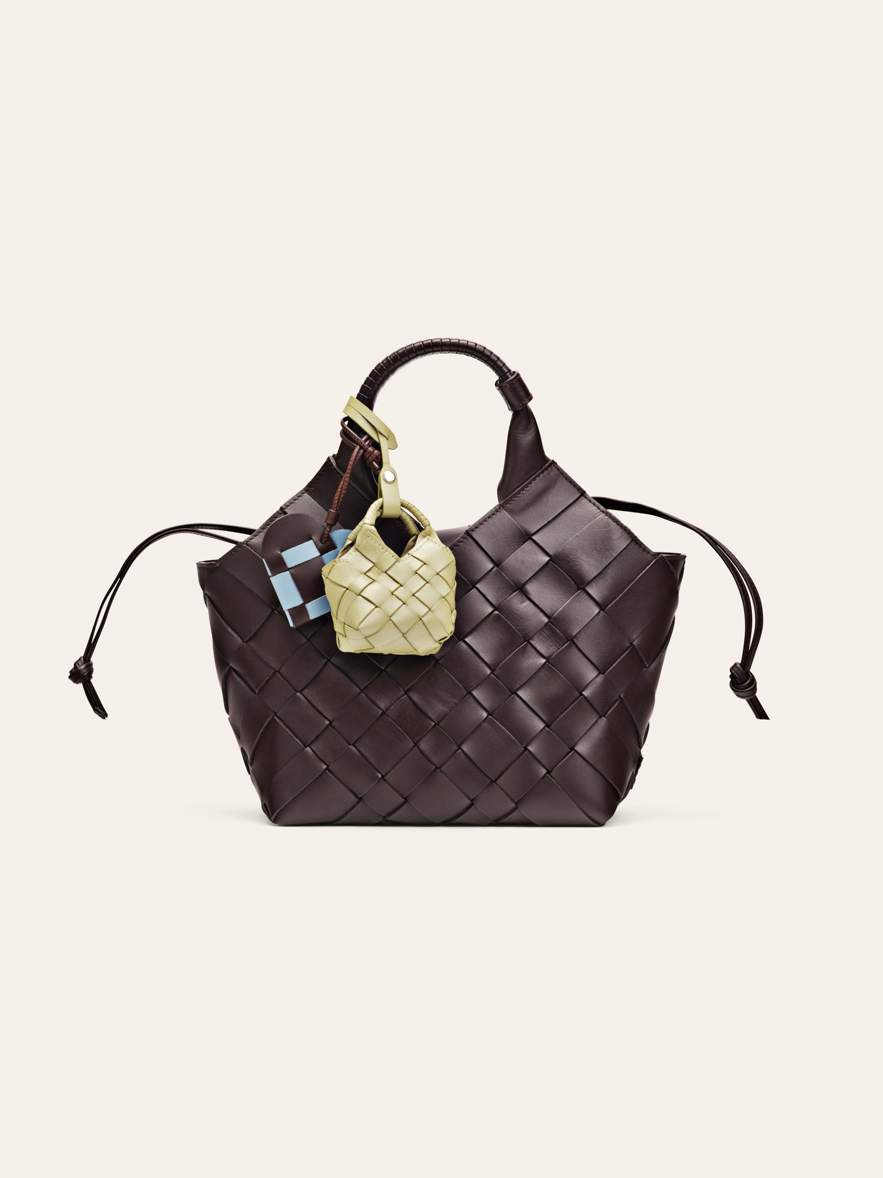 The charms are crafted from leftover leather that was discarded in the bag-making process.