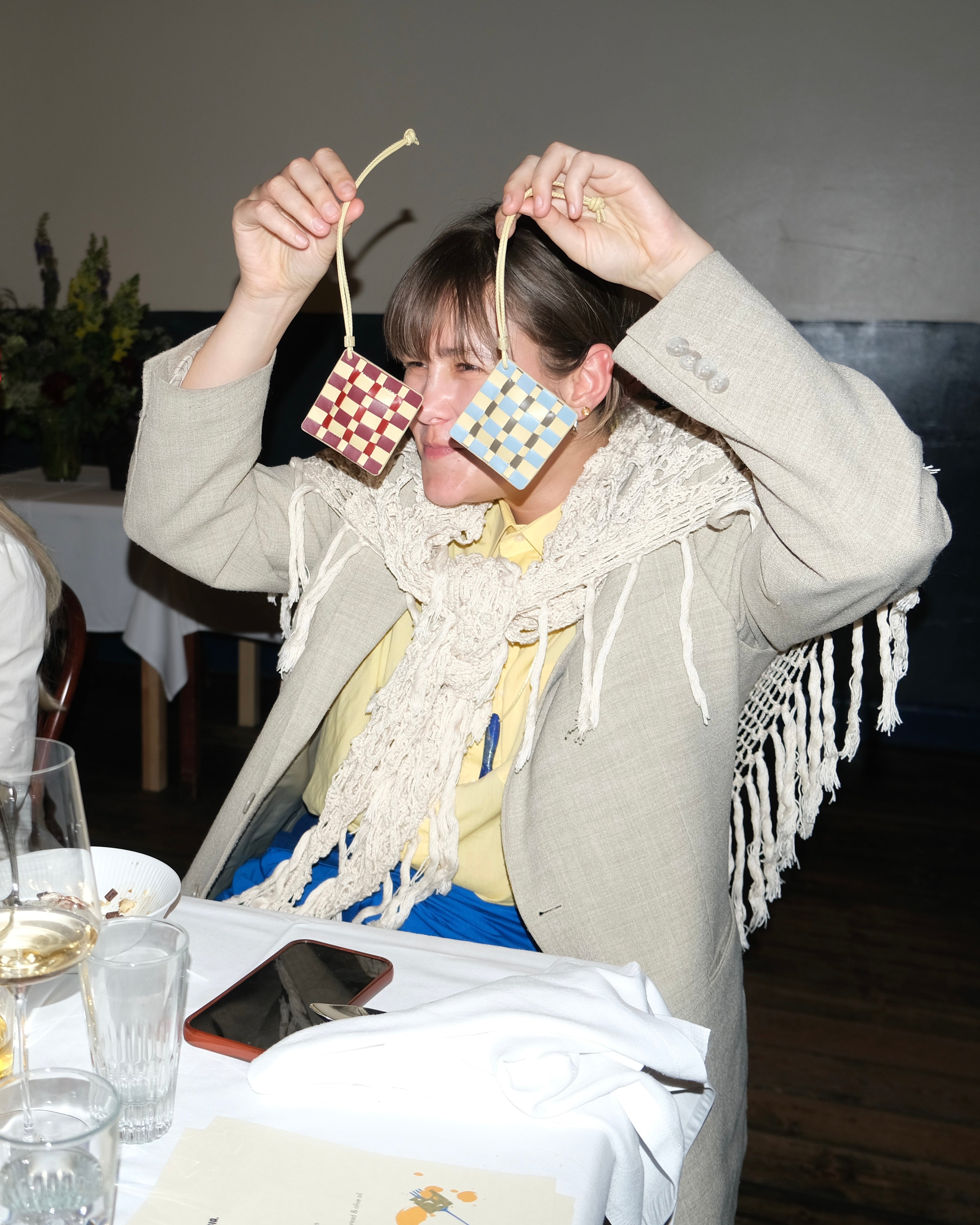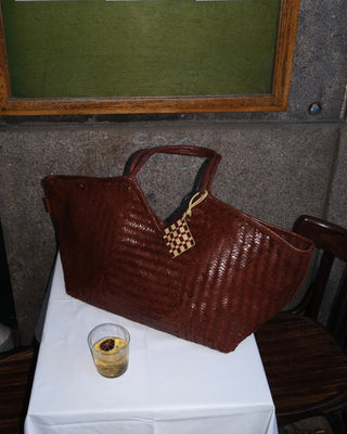 Add a fun and savory token to you bag with this woven leather ravioli.